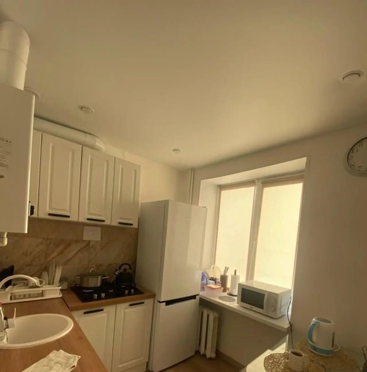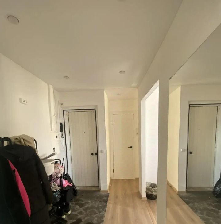 Сделан косметический ремонт: электропроводка заменена, на стенах обои под покраску, на полу ламинат.Туалет ванна в плитке. Потолки натяжные.