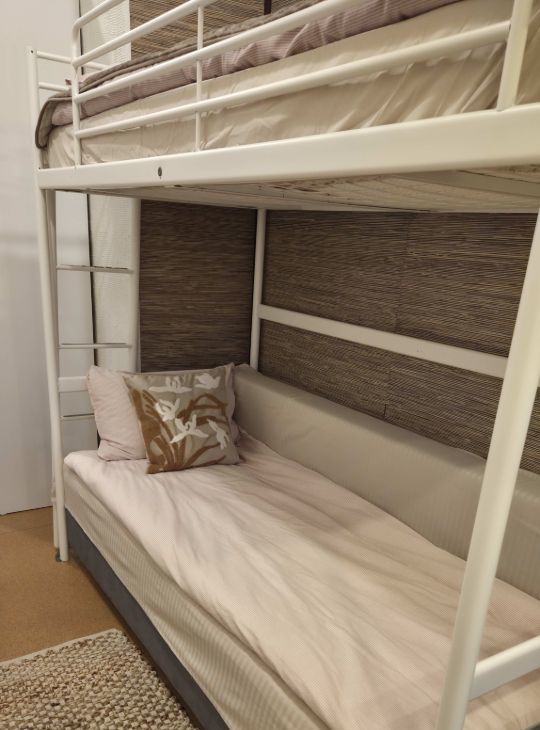 Вторая спальня - с 2 ярусной кроватью, внизу - диван односпальный. Есть платянной шкаф, письменный стол.