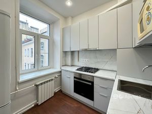 Полноценная кухня с посудомоечной машиной, спальня, гостиная со столовой зоной, раздельная ванная комната. Окна выходят во двор.