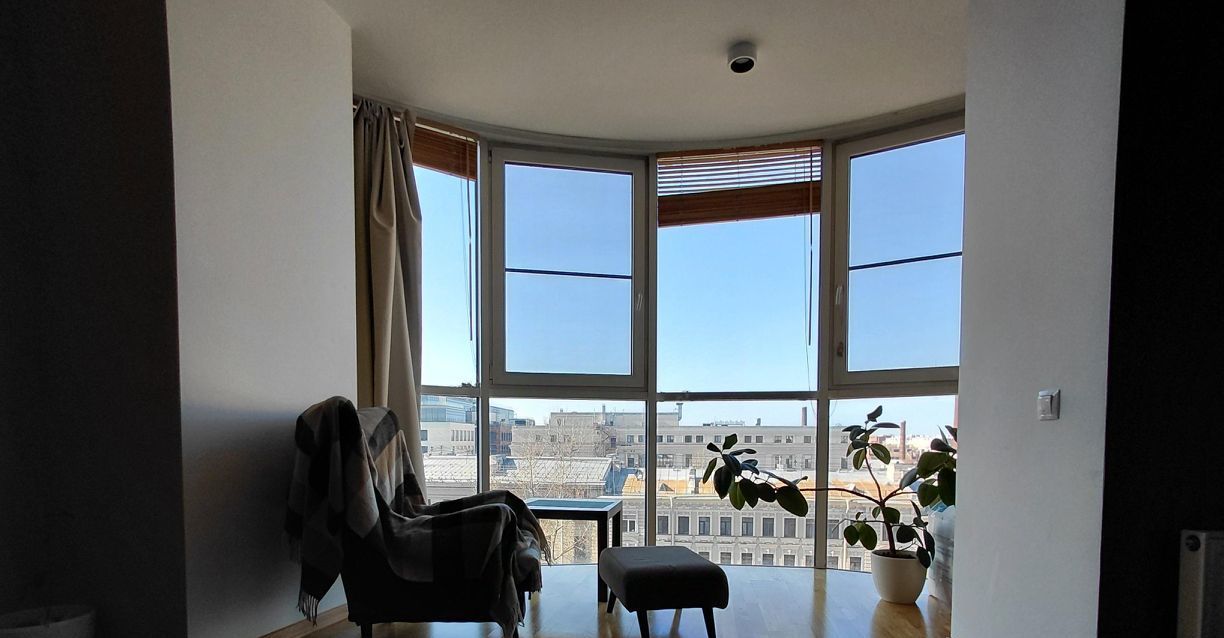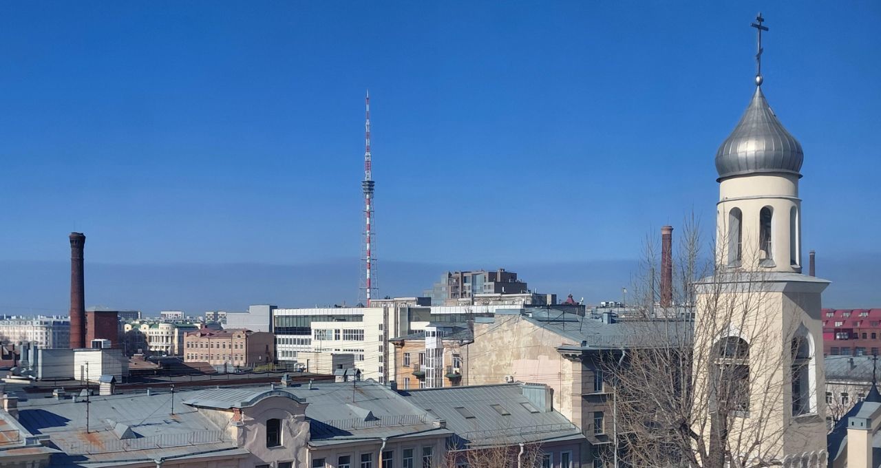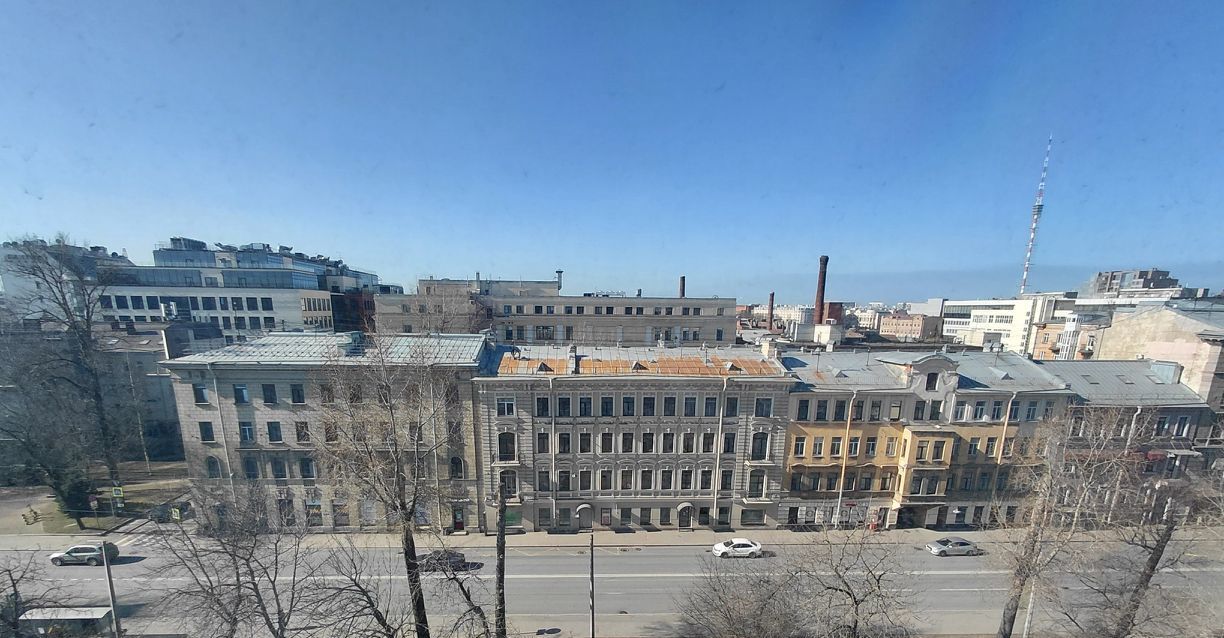 Видовые характеристики: Панорамное остекление в гостиной. Прямой вид на Телебашню и храм. Солнечная сторона, все окна выходят на проспект.