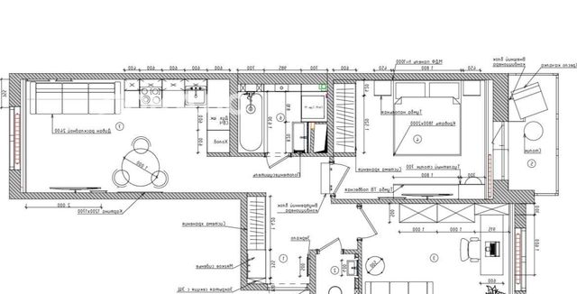 Большая кухня-гостиная, спальня, и раздельный санузел.