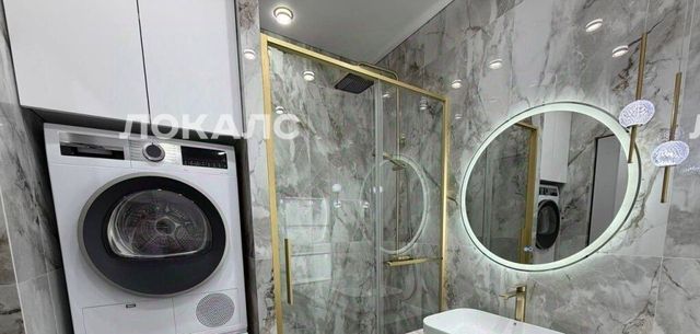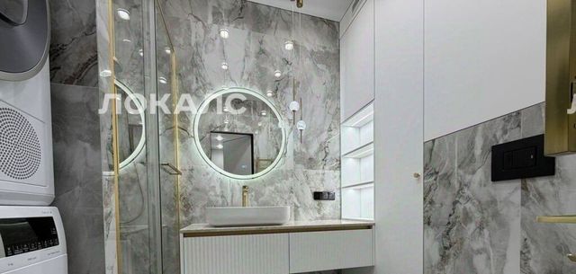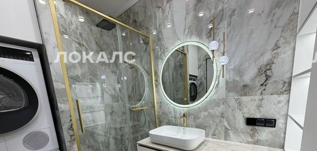 5. Ванная комната (5м²): Просторная светлая ванная комната с душевой кабиной, встроенной инсталляцией и гиг. душем, бойлером, встроенными местами для хранения. Стиральная и сушильная машины Bosch. Удобная раковина с тумбой и столешницей из кварцевого агломерата. Зеркало с подсветкой и подогревом. Теплый пол.