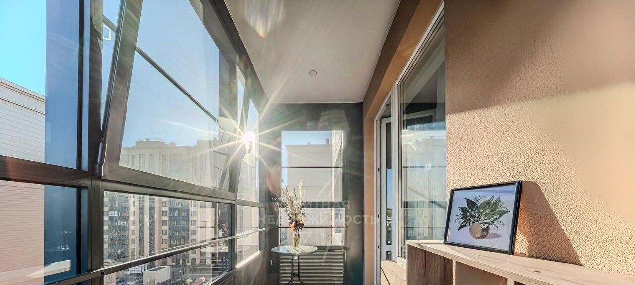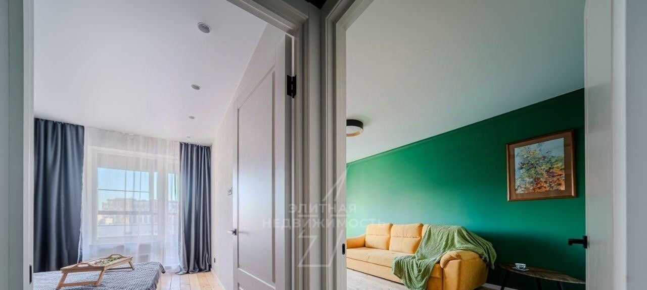 Подключён интернет. В ванной теплый пол. Подоконники из натурального дерева (в гостиной подоконник-скамья). Вид на телебашню. Раскладной диван в гостиной, в спальне шторы блэкаут. Квартира угловая.