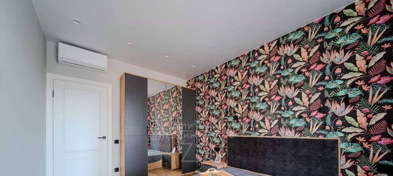 Дизайнерский ремонт выполнен в 2025 году, есть вся бытовая техника, в т.ч. водонагреватель и кондиционеры в гостиной и в спальне.