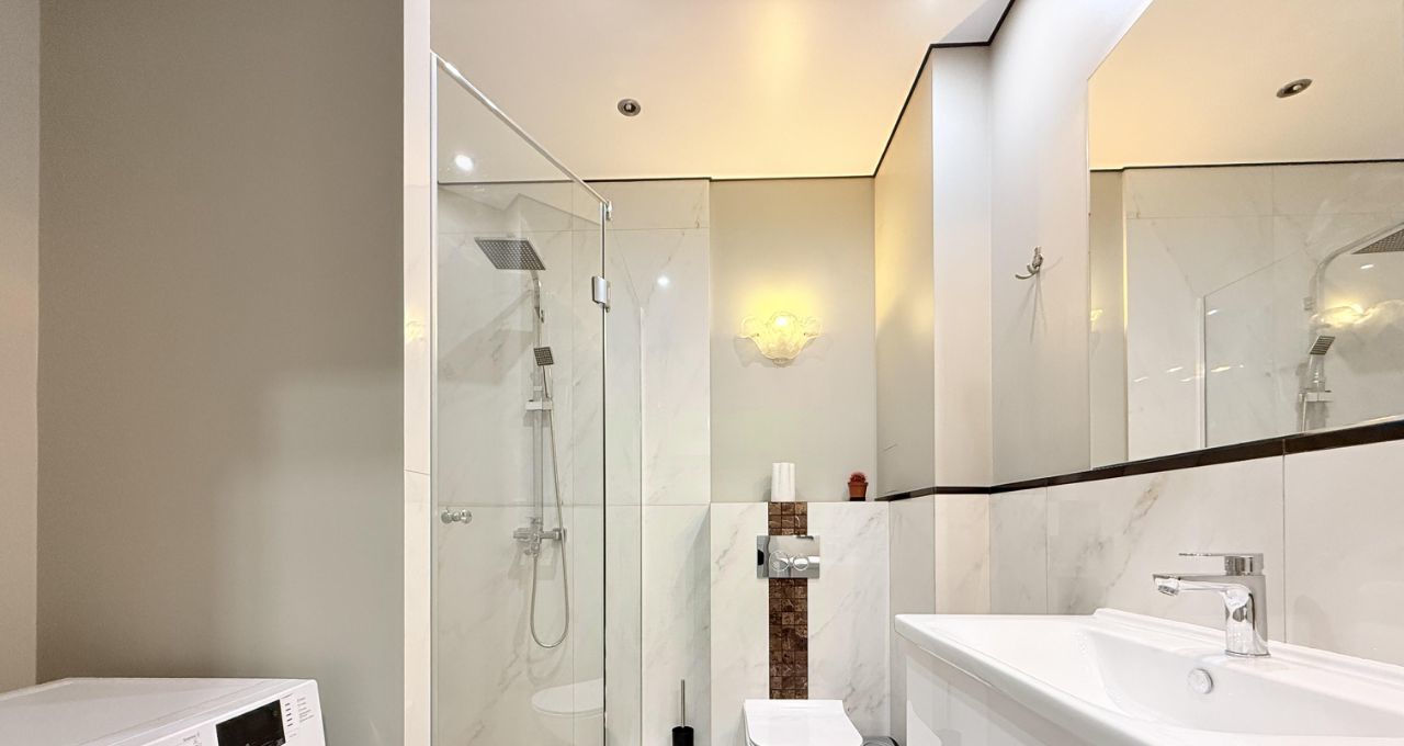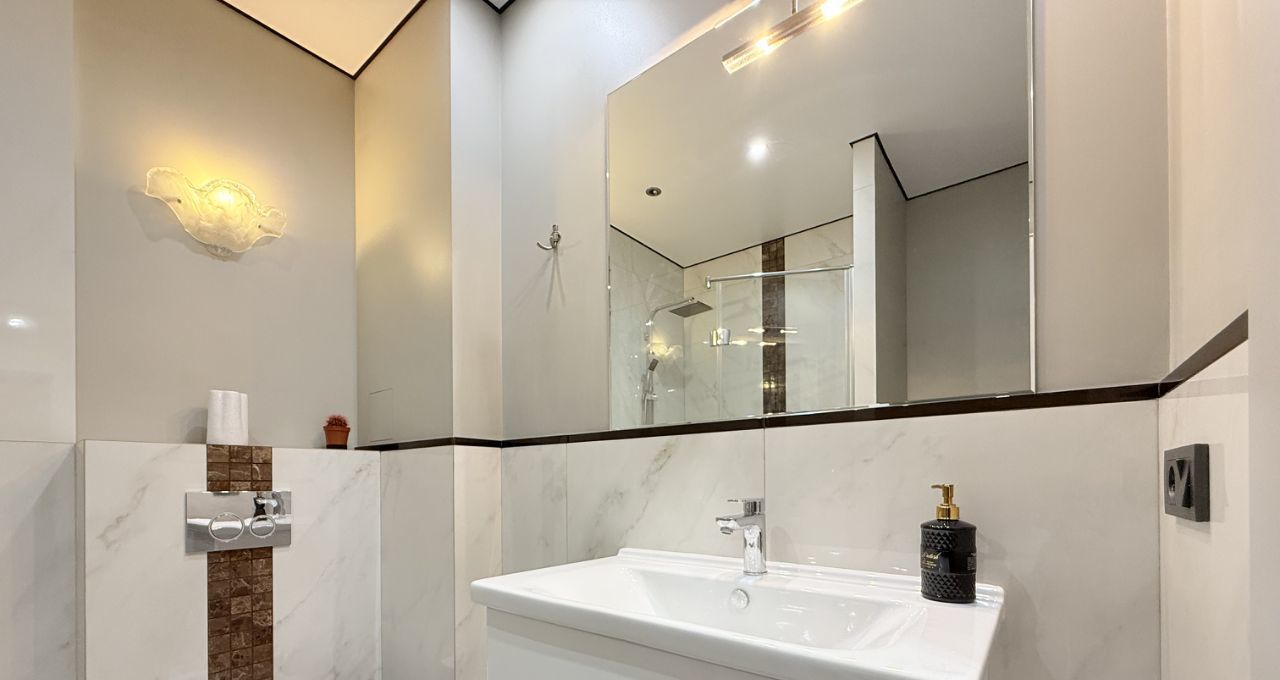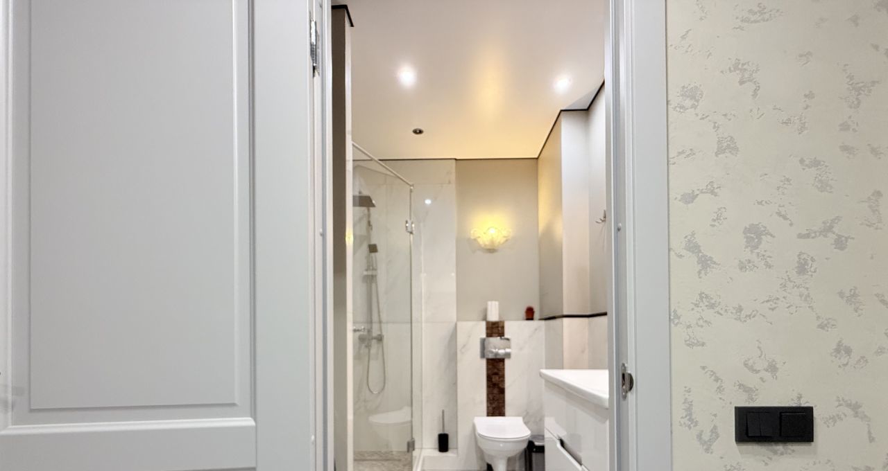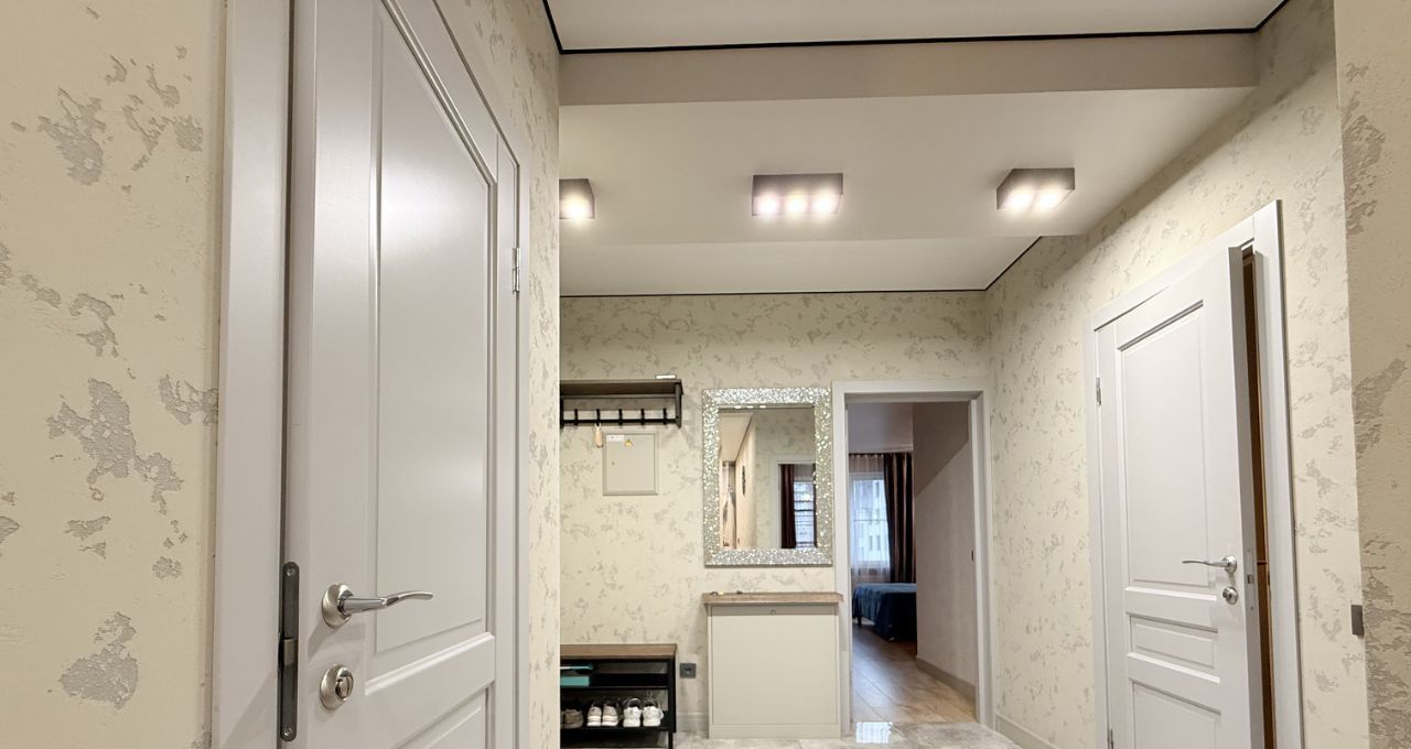 В квартире выполнен высококачественный ремонт с использованием натуральных материалов: дубовые подоконники, мраморные вставки в санузлах. Для максимального комфорта установлены теплые полы в ванной и на балконе, предусмотрены различные сценарии освещения, а также москитные сетки на окнах. Квартира полностью меблирована, оборудована всей необходимой бытовой техникой и продуманными системами хранения.