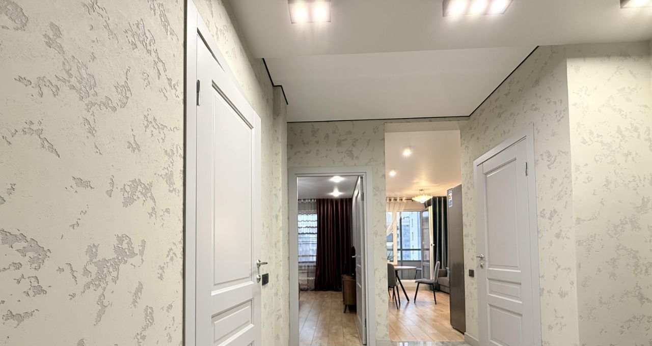 Предлагается в аренду евро трехкомнатная квартира в новом жилом комплексе бизнес-класса Георг Ландрин. Квартира расположена в малоэтажном корпусе (8 этажей, всего 4 квартиры на этаже), что гарантирует спокойствие и приватность. Просторная планировка включает две изолированные комнаты, функциональную и вместительную гардеробную, два санузла, и кухню-гостиную с видом на благоустроенный внутренний двор.