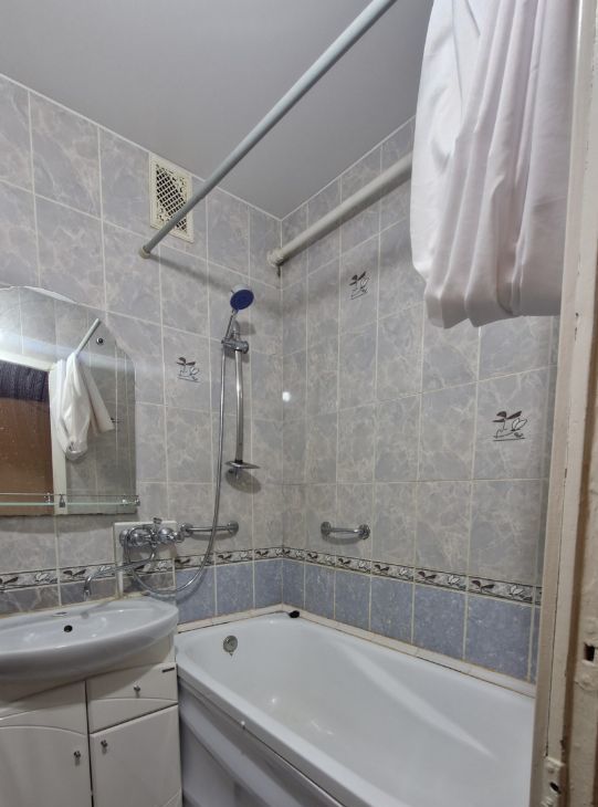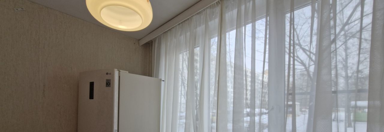 Хорошее состояние, чистая и уютная, установлены стеклопакеты. Квартира двухсторонняя с раздельными комнатами. Спальня с застеклённой лоджией, окна на улицу — тихо, стеклопакеты, кухня и 2-я комната — окна во двор. Есть необходимая мебель и техника для проживания. Хорошие соседи. Чистый подъезд без посторонних запахов, домофон, бдительное ТСЖ. Парковка во дворе.