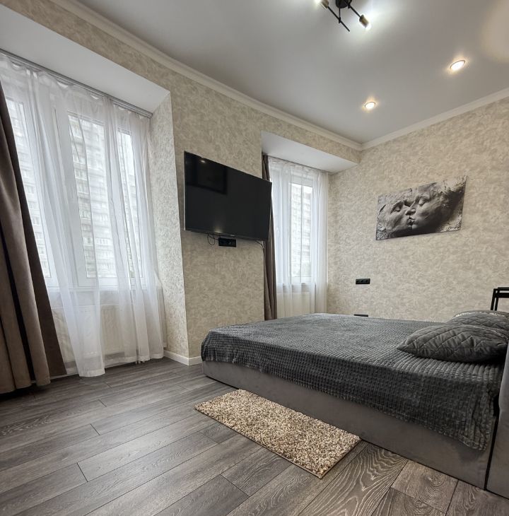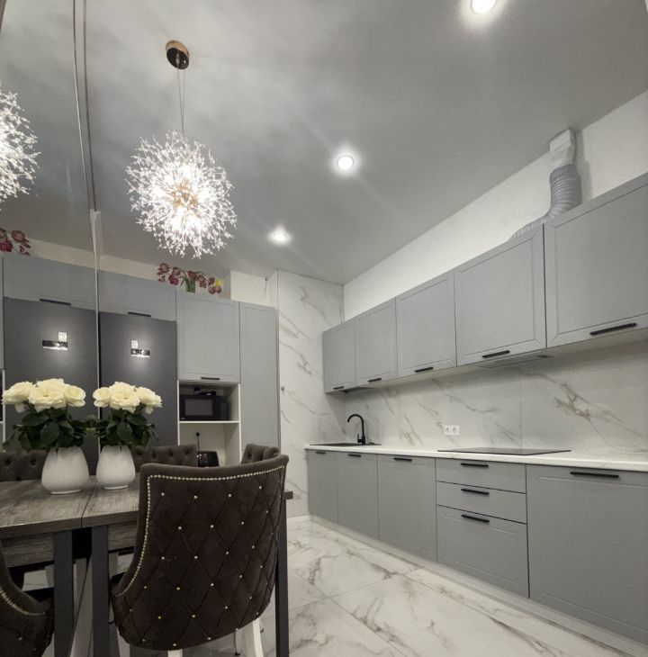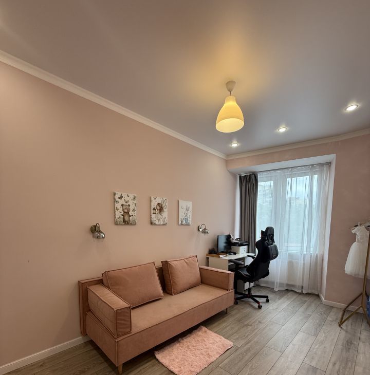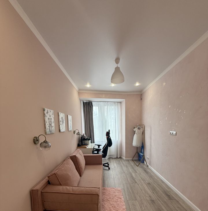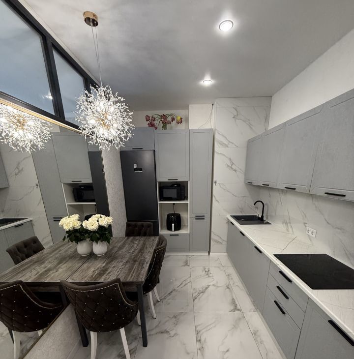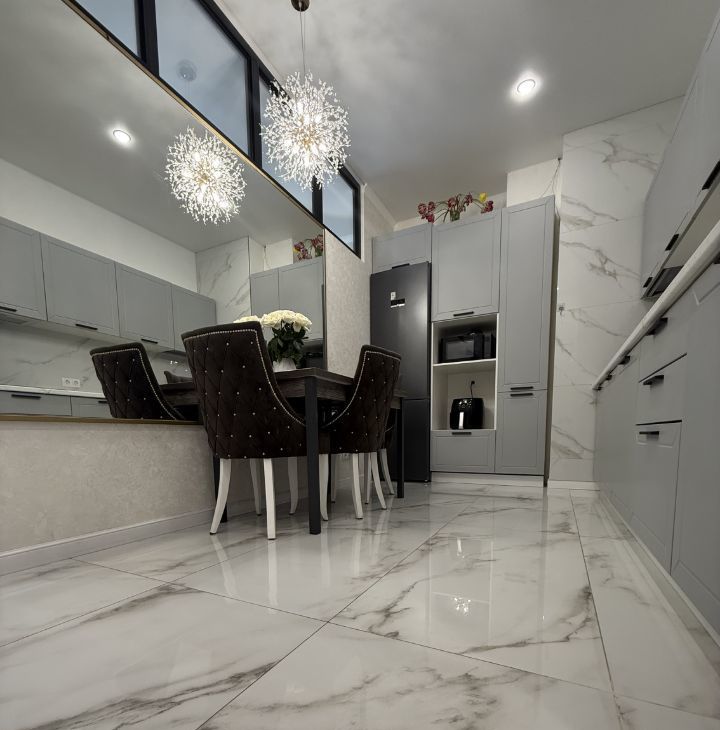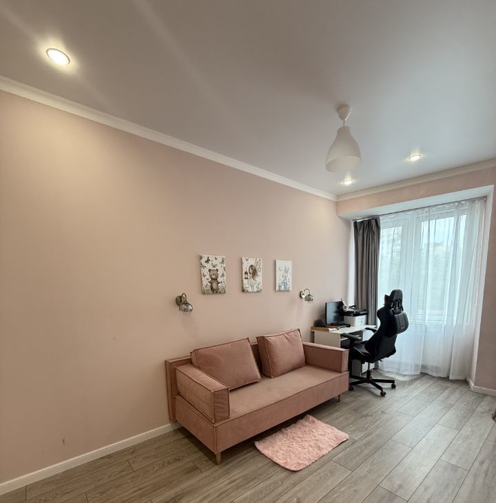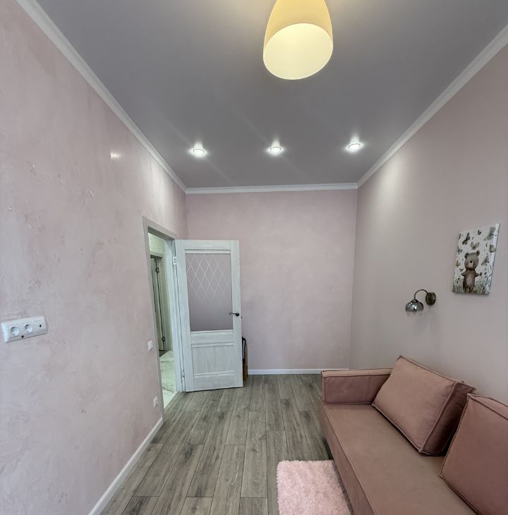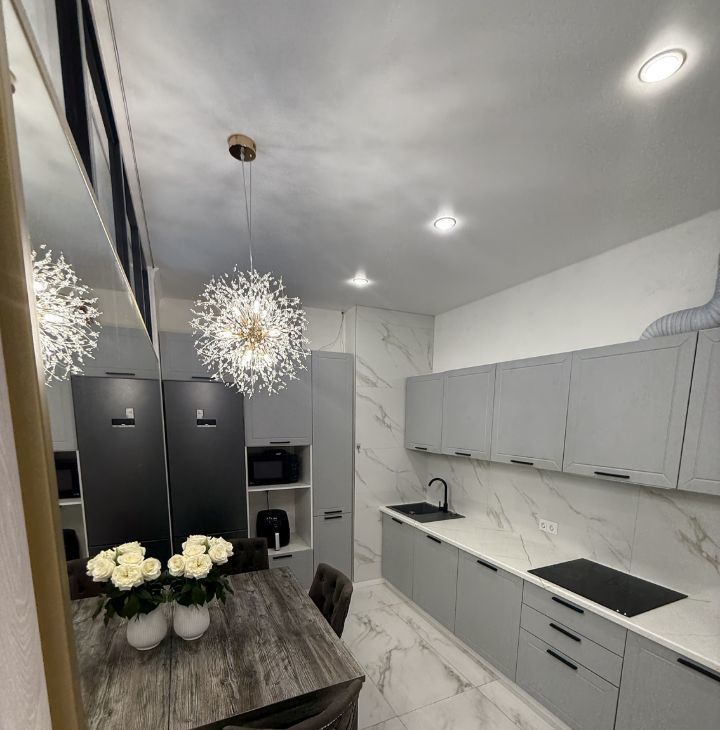 В квартире есть все для комфортной жизни: современный дизайнерский ремонт, продуманная планировка, просторная кухня и уютные комнаты. Санузел совмещенный, отделан качественными материалами. Окна выходят во двор, поэтому в квартире всегда тихо и спокойно.