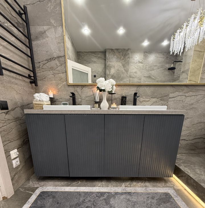 - Ванная комната -10 метров ( ванна , душ , столешница на 2 раковины , длина 180 см )