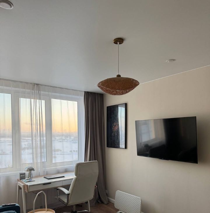 В квартире выполнен евроремонт, благодаря чему она выглядит стильно и современно. Высота потолков — 2,56 метра, что добавляет ощущение простора. В наличии вся необходимая техника: холодильник, телевизор и стиральная машина. Мебель на кухне и в комнате позволяет сразу же въехать и начинать жить. Совмещённый санузел оборудован ванной, поэтому можно расслабиться после рабочего дня.