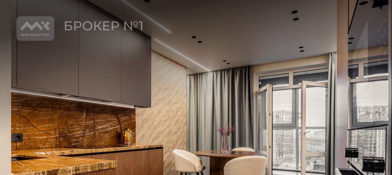 просторную кухню с выходом на застекленный панорамный балкон;