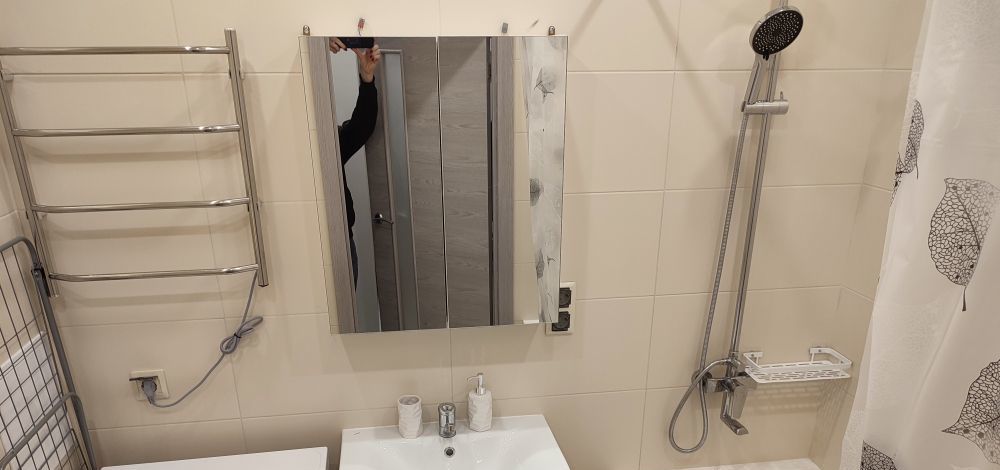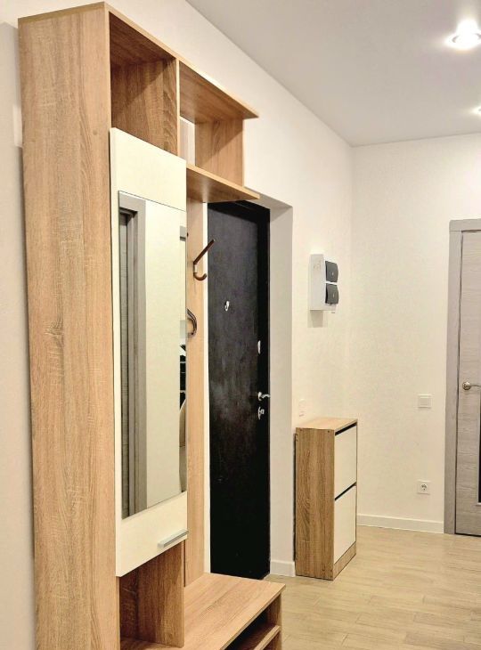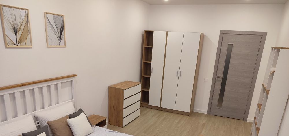 В каждой спальне просторное спальное место с новым ортопедическим матрасом, шкаф для хранения одежды и комод, зеркало. Ничего лишнего, но всё есть. В прихожей предусмотрено место для верхней одежды и обуви.