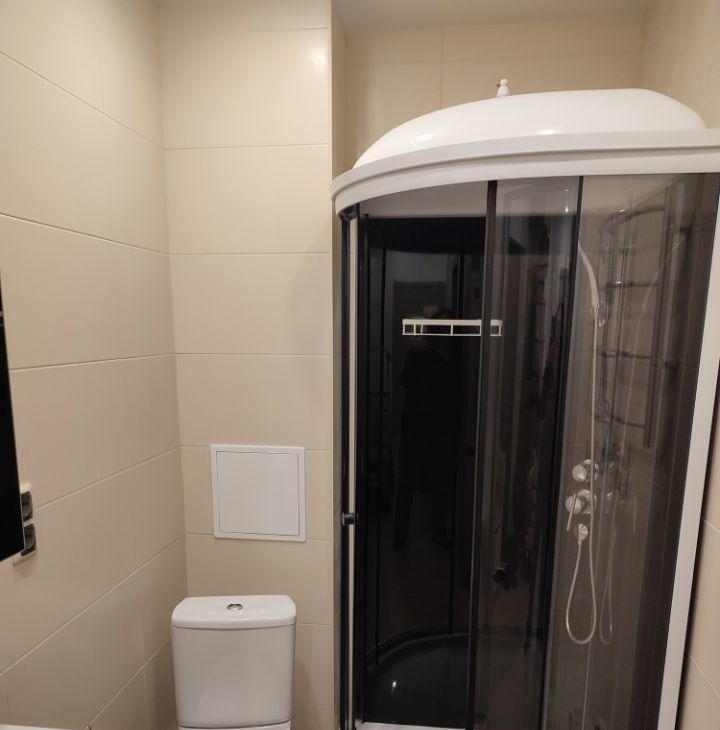 Евро-трешка: две спальни и большая просторная кухня-гостиная, два санузла, в каждом есть унитаз, в одном ванна, в другом душевая кабина, стиральная машина, застекленная лоджия.