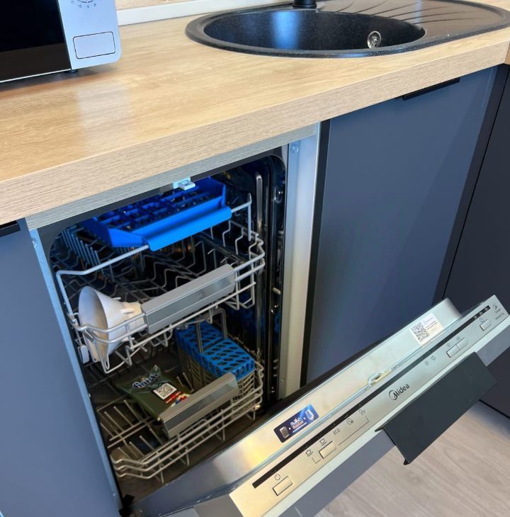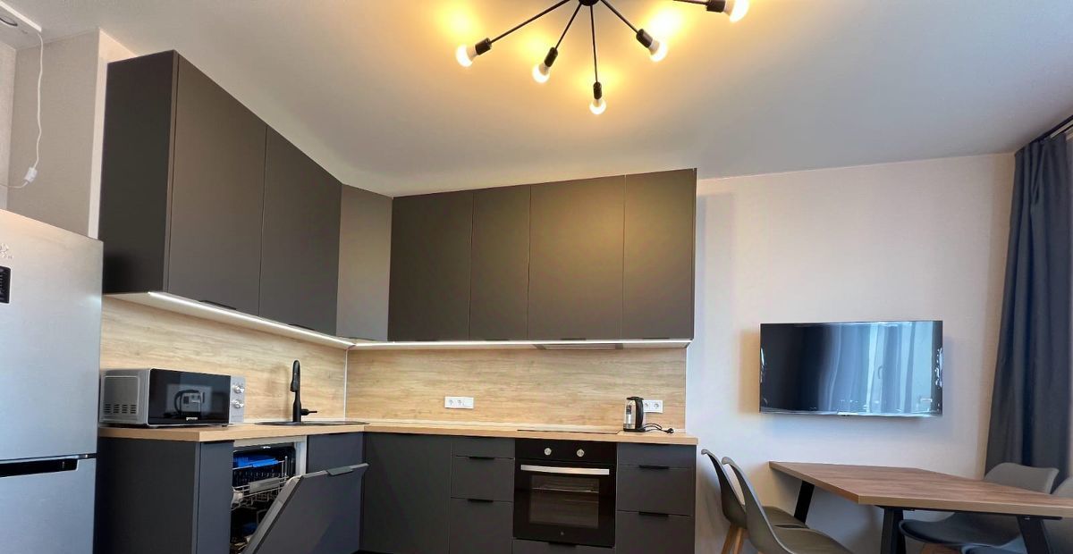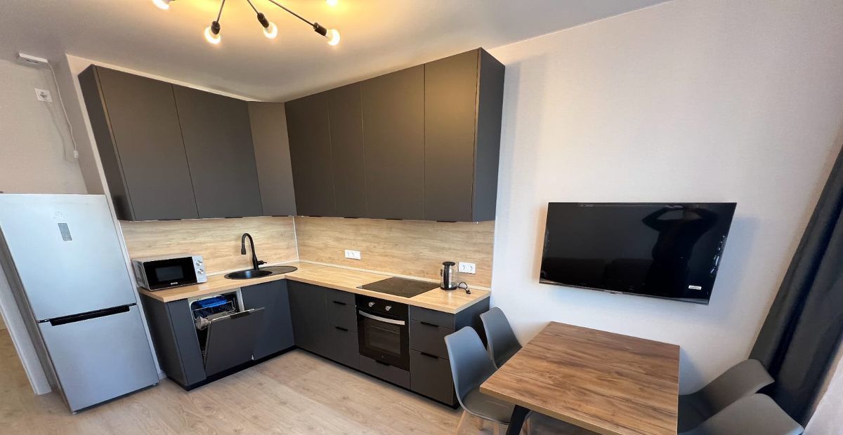 В квартире есть все необходимое для комфортного проживания: холодильник, телевизор, посудомоечная и стиральная машины. На кухне и в комнате установлена мебель. Санузел раздельный, в ванной комнате есть ванна, что особенно удобно для ежедневного использования. Окна выходят как на улицу, так и во двор, что обеспечивает хорошую освещенность и уют.