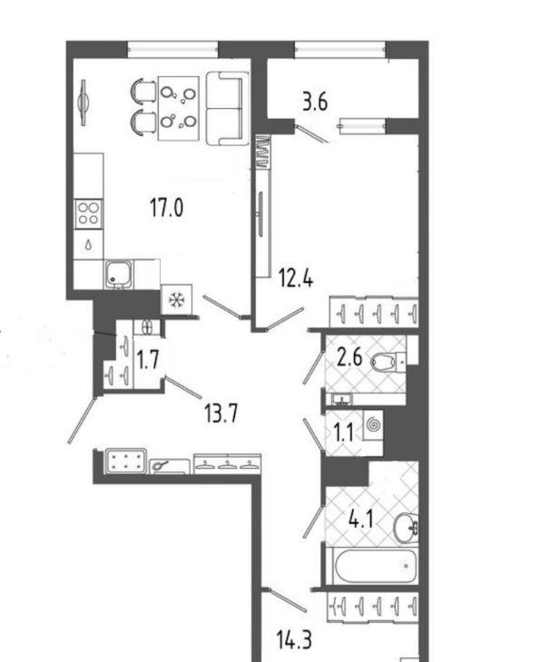2-комнатная квартира: Санкт-Петербург, Ленинский проспект, 114 (63 м²)