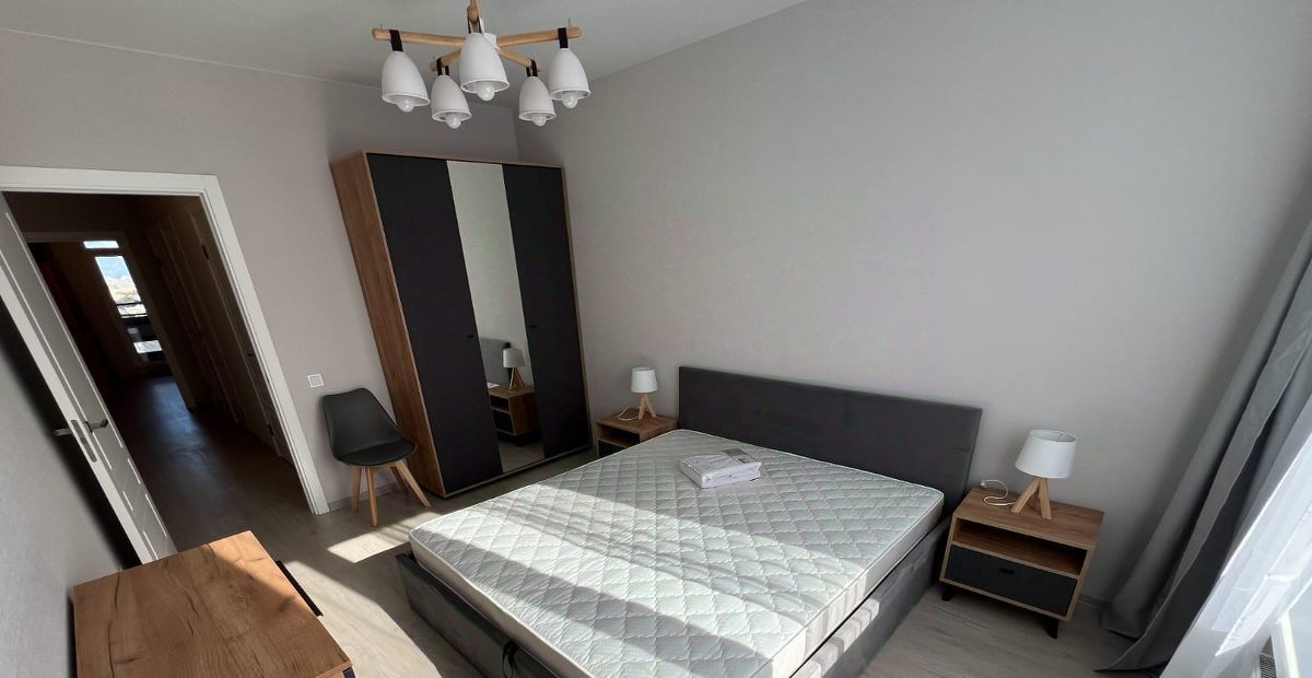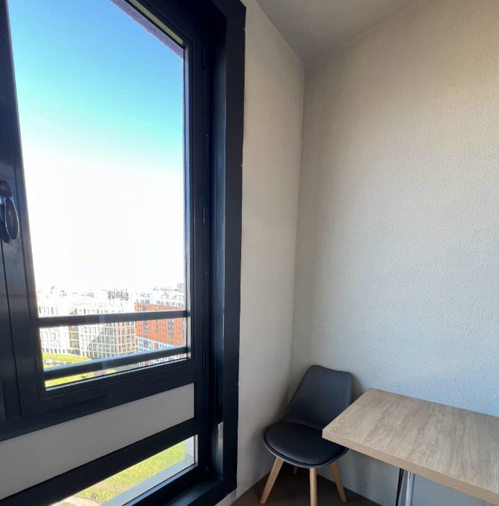 Сдается в аренду просторная двухкомнатная квартира площадью 70 кв. м на 17-м этаже 18-этажного дома. Квартира с дизайнерским ремонтом и современной обстановкой. Жилая площадь составляет 28 кв. м, а кухня — 17 кв. м, есть гардеробная, что делает её комфортной для жизни.