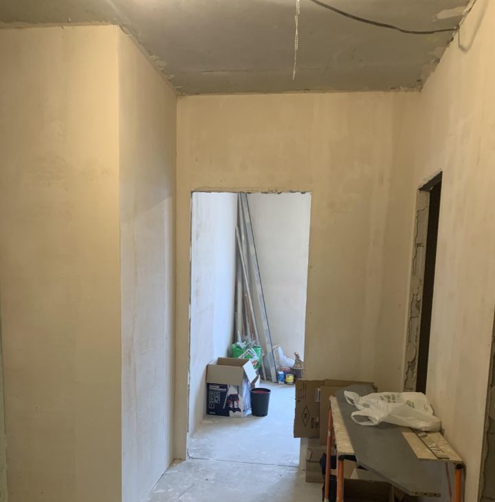Угловая квартира, удачная планировка на этаже, 4 квартиры на этаже, выполнена штукатурка квартиры под шпаклевку.