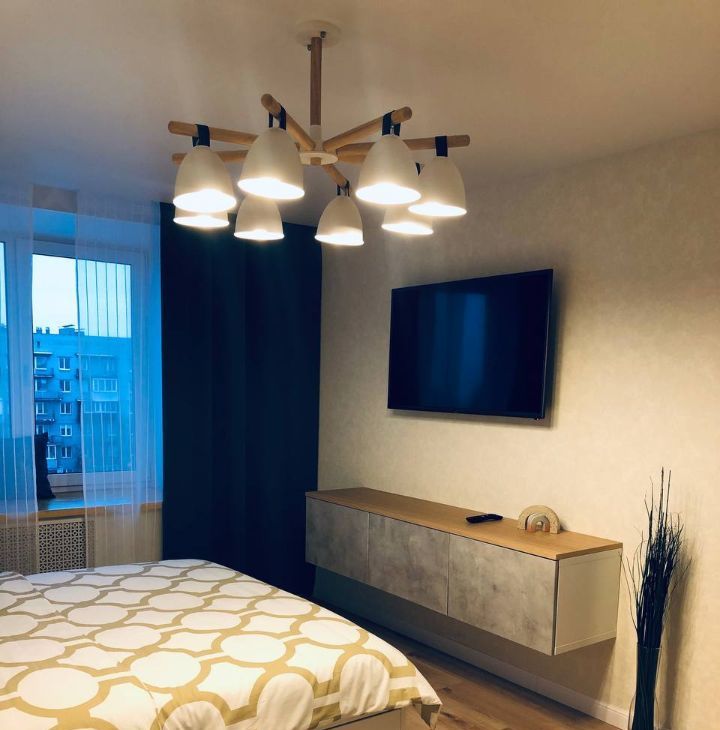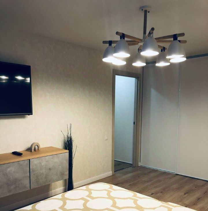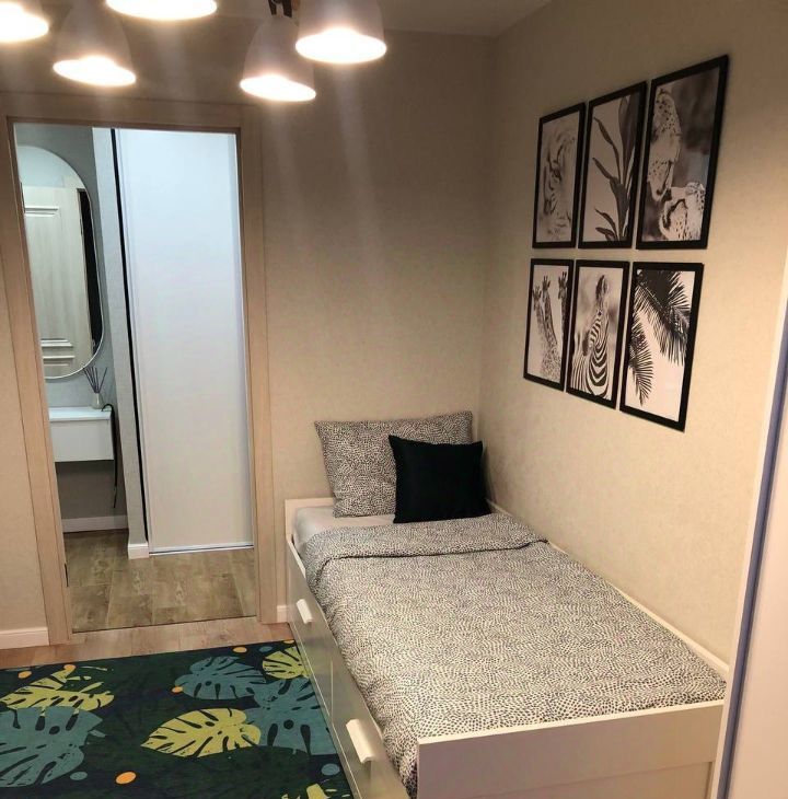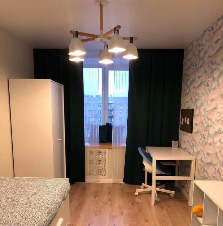 Комнаты изолированные, санузел совмещенный. 2 гардеробных: в прихожей и большая в спальне. Большие окна и подоконники в комнатах и кухне. В комнатах кровати, в детской можно разобрать и сделать ее двухспальной.