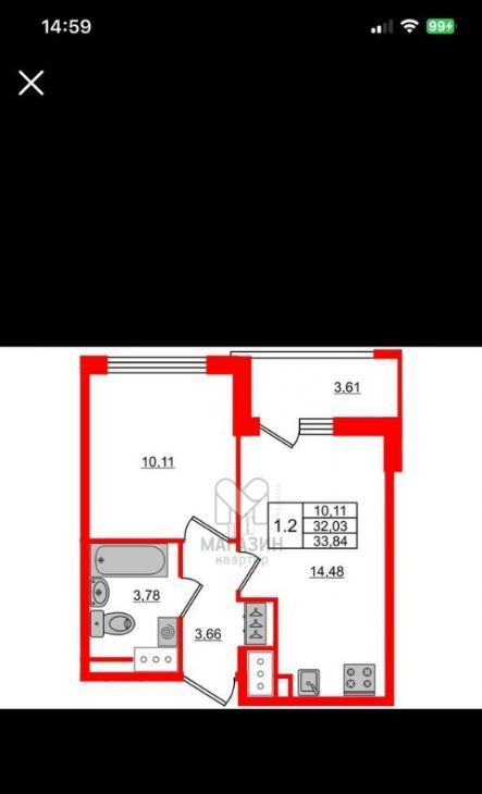 2-к кв. Санкт-Петербург Дальневосточный просп., 19к1 (32.0 м²)