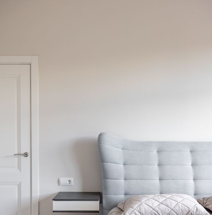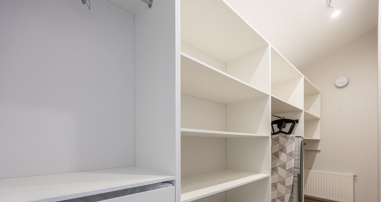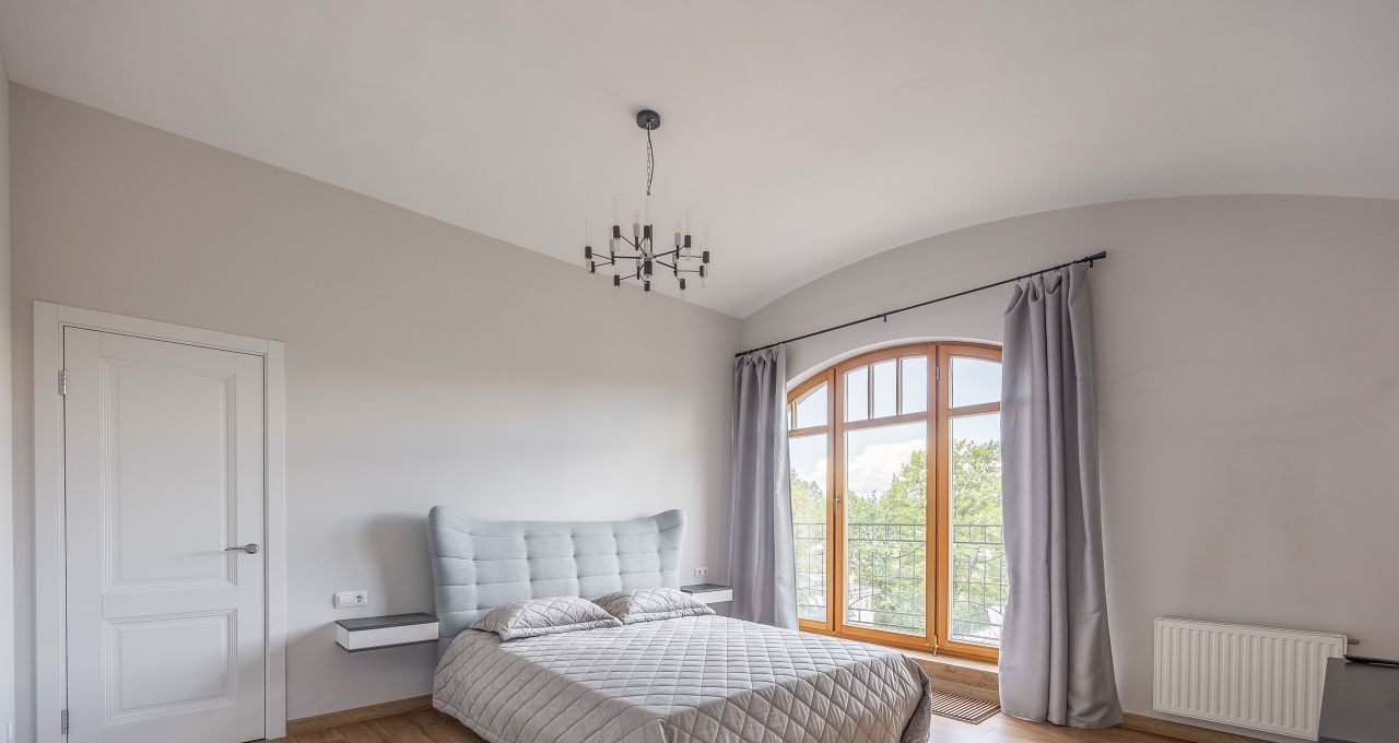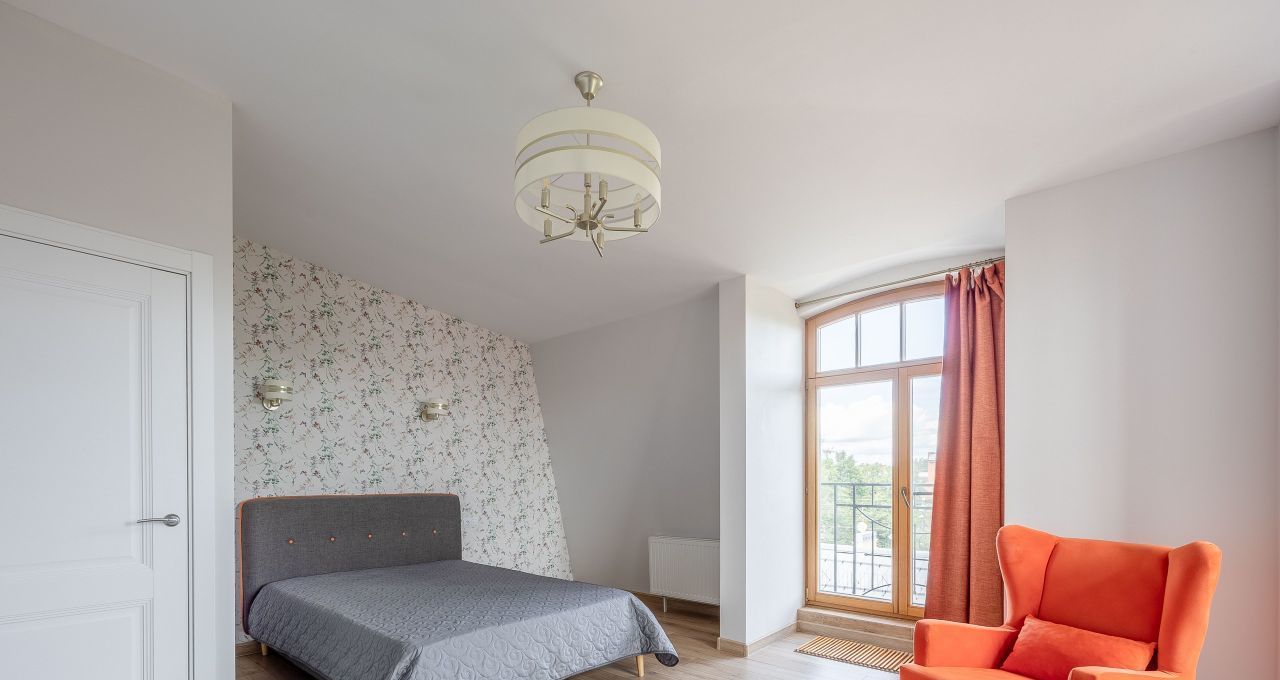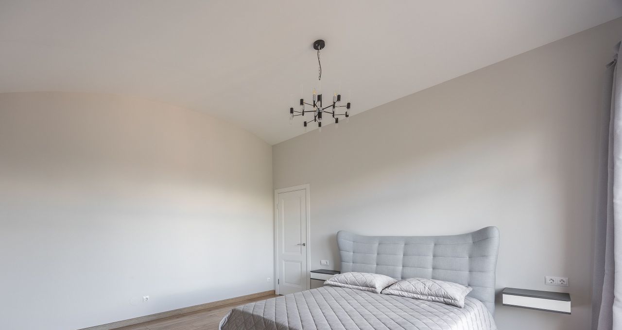 - Спальня (26м2) располагает: удобной двуспальной кроватью 160*200 с ортопедическим матрасом, полками и ящиками, телевизором с диагональю 43 и встроенным смарт тв. Также, в комнате есть своя гардеробная.