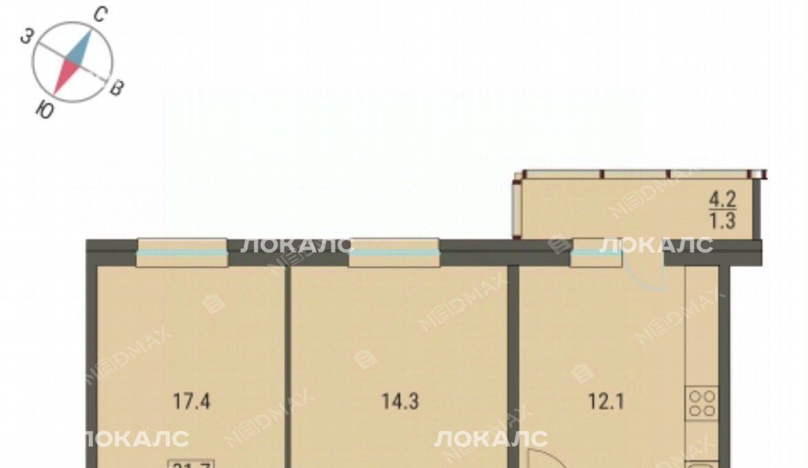 2-комнатная квартира: Санкт-Петербург, 5-я Советская улица, 38Б (61.9 м²)