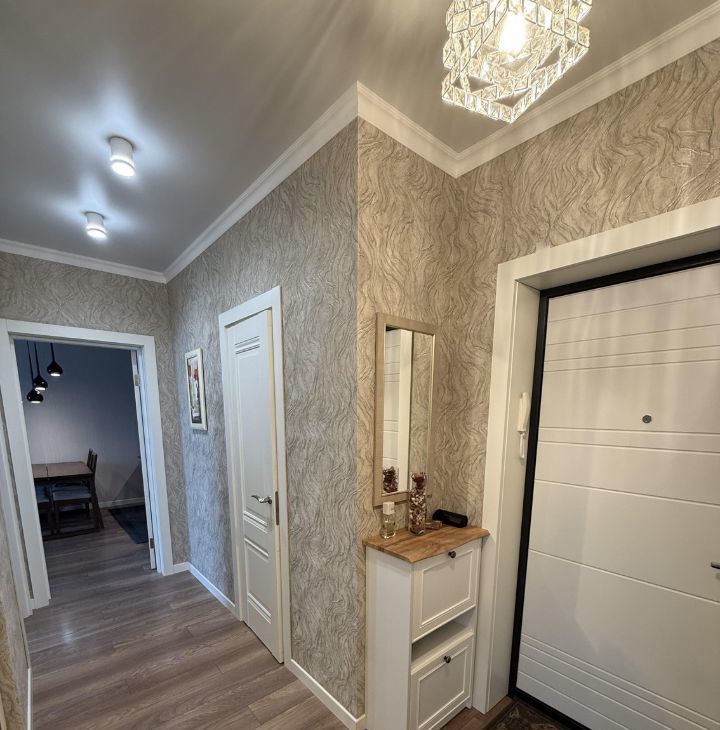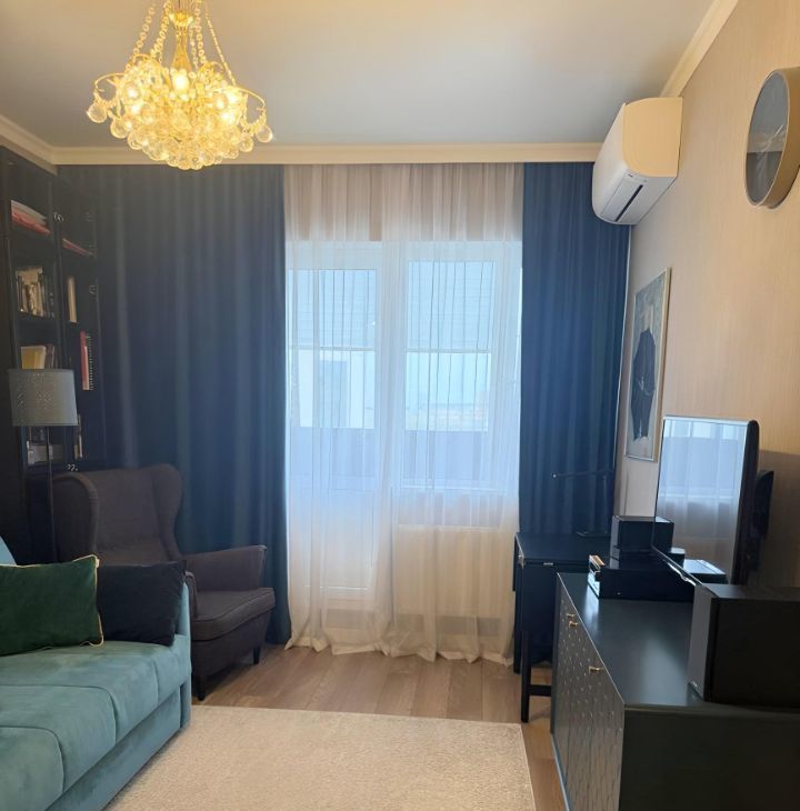 В квартире выполнен качественный дизайнерский ремонт. В кухне-гостиной площадью 20,4 кв. м есть вся необходимая мебель и техника: холодильник, посудомоечная машина, кондиционер и телевизор. Комнаты так же полностью мебелированы и оснащены всем необходимым. Лоджия добавляет дополнительное пространство для отдыха.