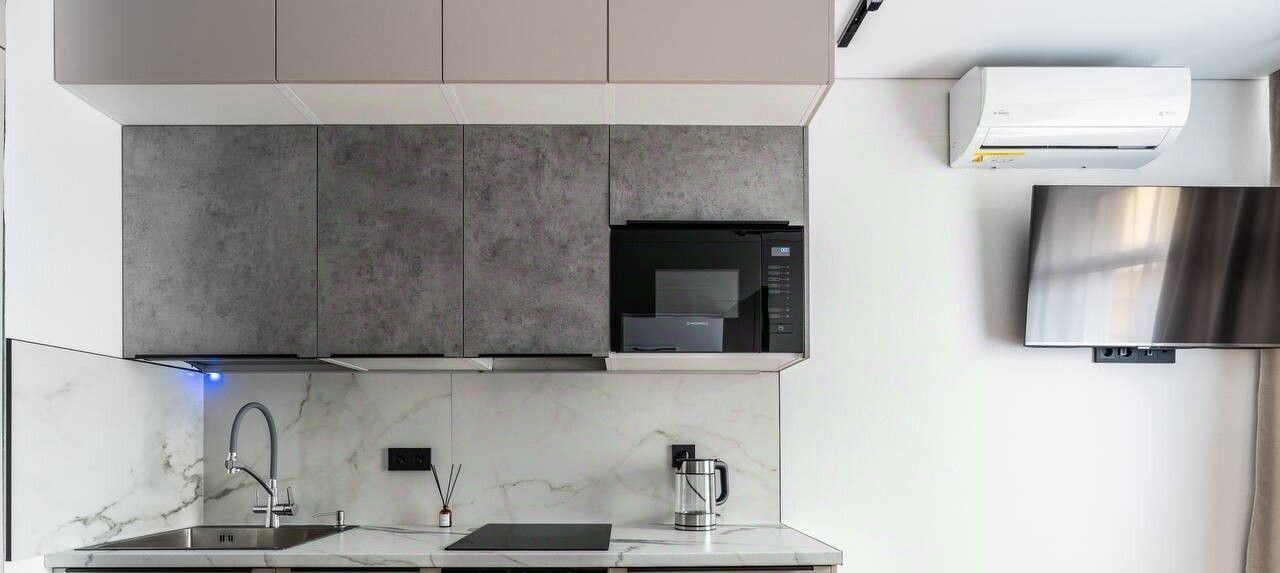 Просторная( кухня-гостиная + две изолированные комнаты) с безупречным дизайнерским ремонтом.