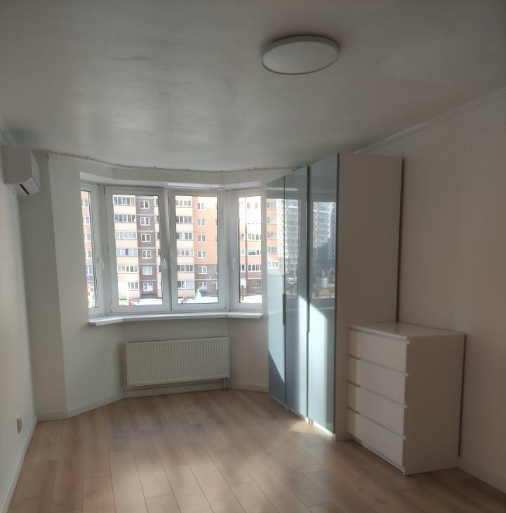 В квартире сделан евроремонт: на полу ламинат, стены покрашены белой краской. В комнатах установлены кондиционеры.