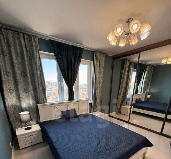 В спальне большой шкаф-купе, шикарная кровать с ортопедическим