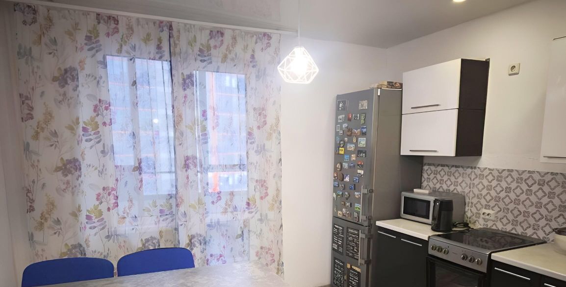 Напрямую от собственника сдается просторная двухкомнатная квартира в современном доме 2015 года постройки. Общая площадь — 60 кв. м, жилая — 40 кв. м, кухня — 11 кв. м. Квартира расположена на 5-м этаже 26-этажного монолитного дома. Высота потолков — 2.7 метра. Всего в доме три пассажирских и один грузовой лифт. Окна выходят во двор, что обеспечивает тишину и уют.