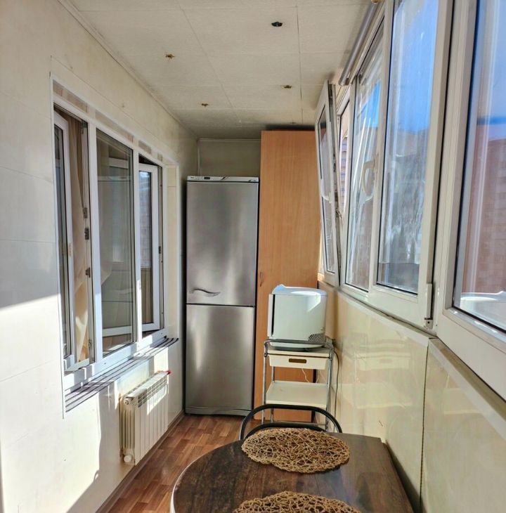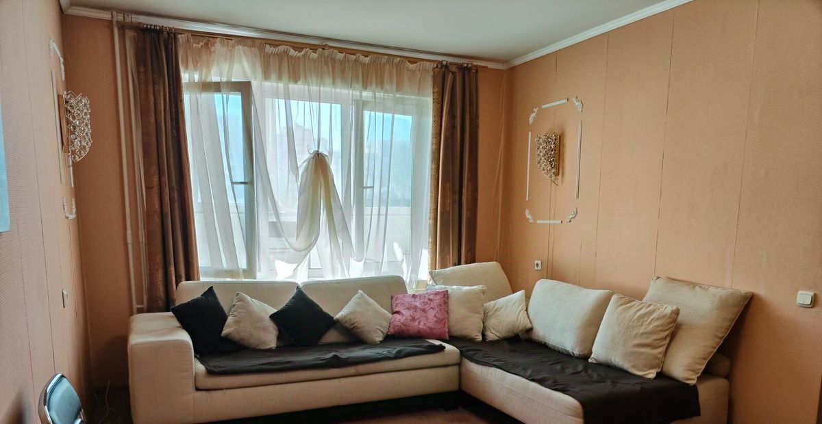 Общая площадь квартиры составляет 45 квадратных метров. Планировка включает две комнаты площадью 17 и 12 квадратных метров, а также кухню площадью 6 квадратных метров. В квартире предусмотрено четыре спальных места. Жилье находится на 10-м этаже 13-го панельного дома. Высота потолков стандартная, окна выходят во двор, что уменьшает уровень уличного шума. В квартире имеется лоджия.