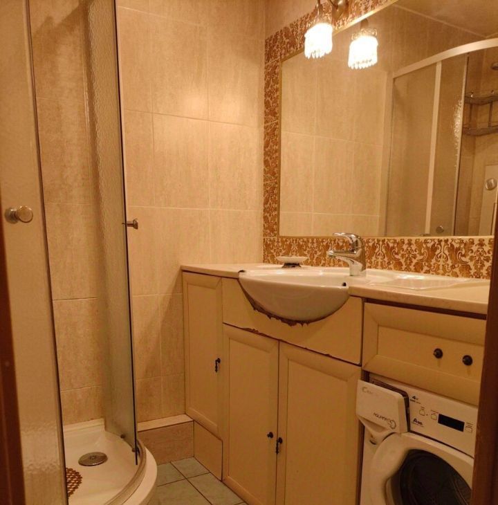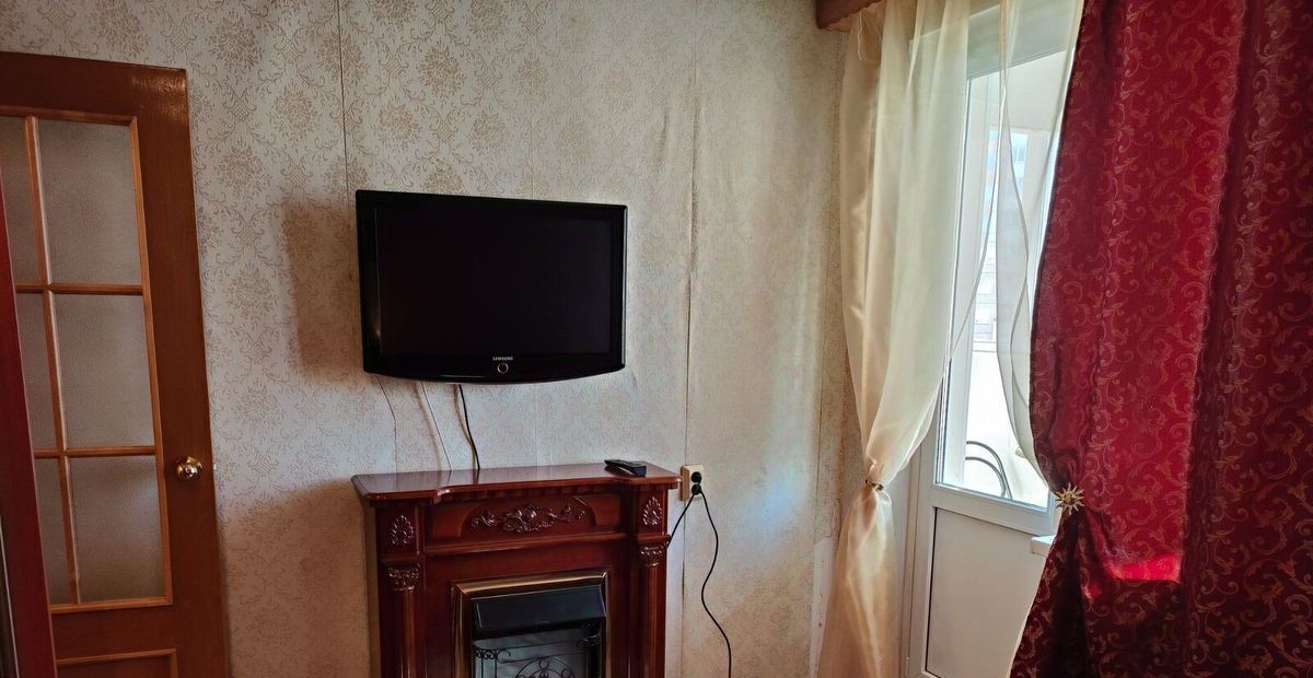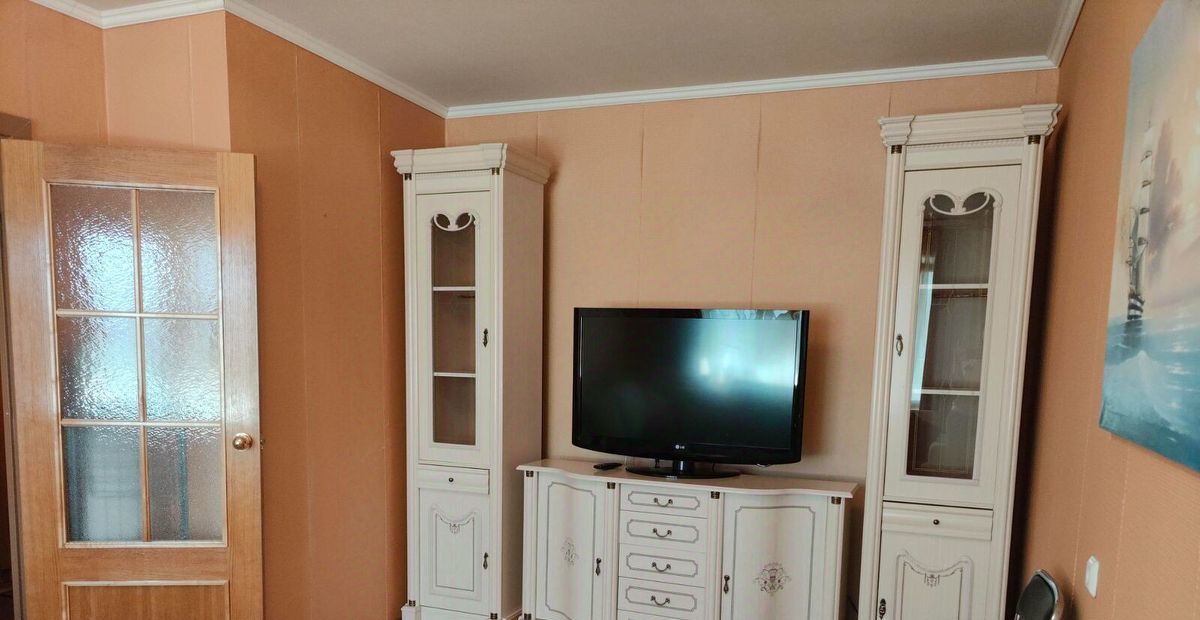 Внутри квартиры установлена необходимая мебель в комнатах и на кухне. Техническое оснащение включает холодильник, стиральную машину, посудомоечную машину, электрическую плиту, микроволновую печь и телевизор. Имеется подключение к интернету. Квартира требует косметического ремонта.