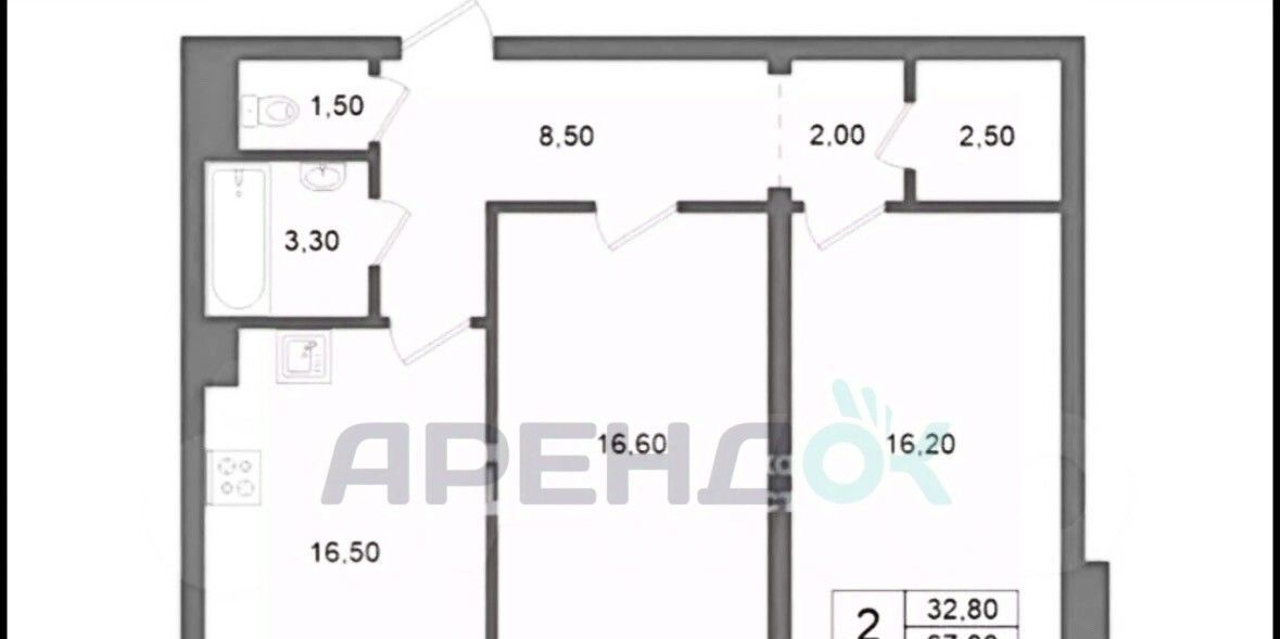 2-к кв. Санкт-Петербург Двинская ул., 8К3 (67.0 м²)