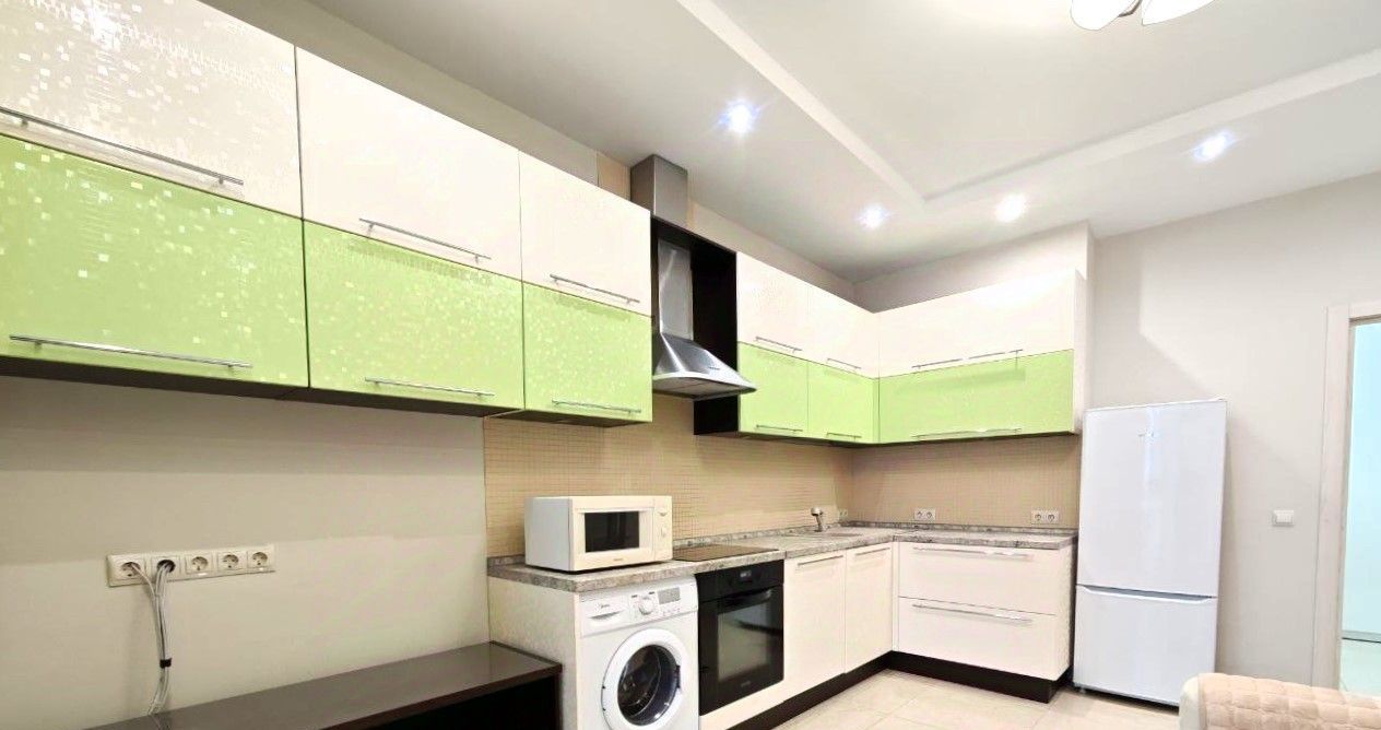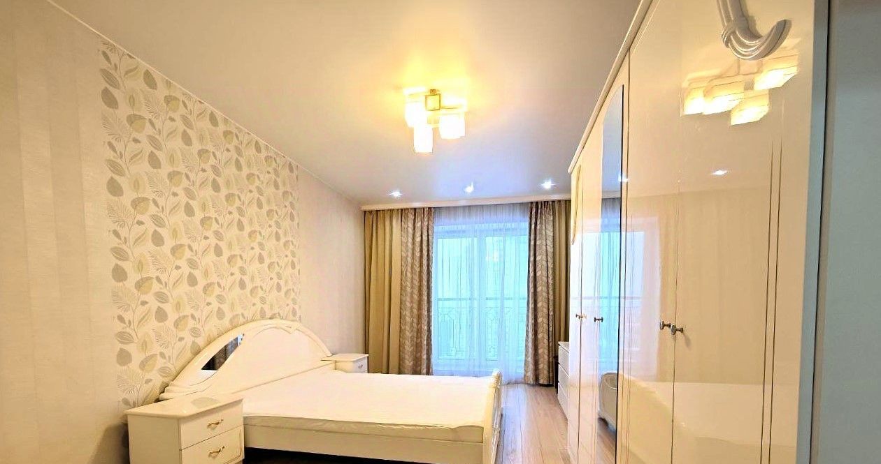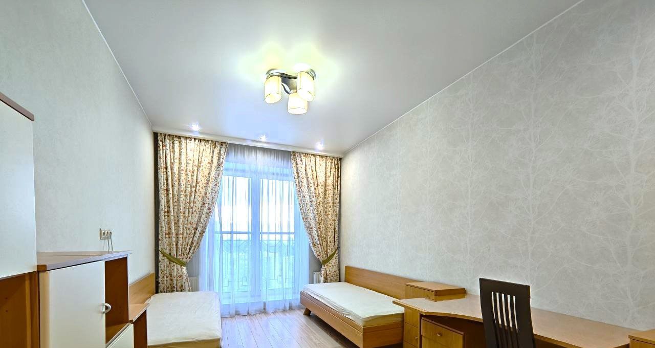 Установлена необходимая мебель и бытовая техника (холодильник, варочная панель, духовой шкаф, посудомоечная машина, стиральная машина). Одна комната оборудована для двоих детей. Двуспальная кровать в основной спальне, шкафы в коридоре и в комнатах, на балконе.