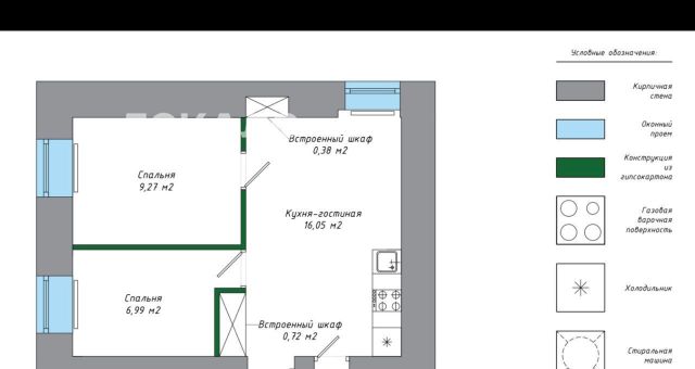 1-комнатная квартира: Санкт-Петербург, Костромской проспект, 14к2 (38.4 м²)