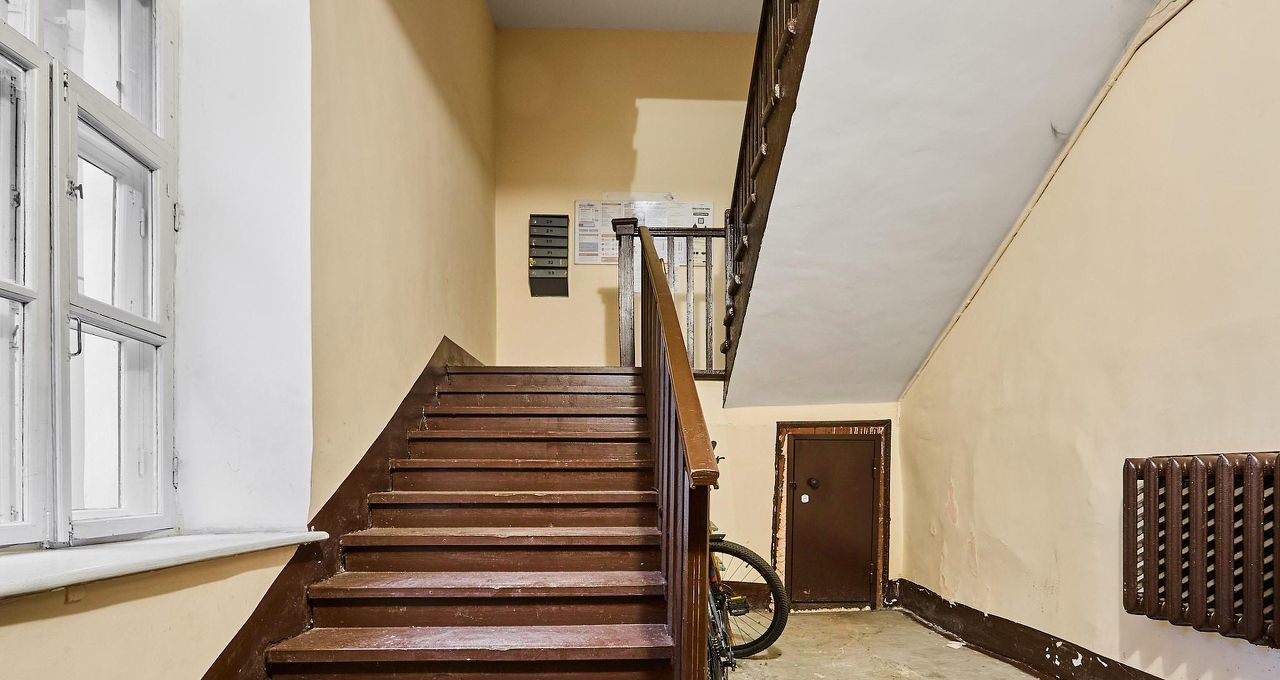 + Чистая, ухоженная парадная. Отсутствие соседей на этаже. Можно оставлять велосипед или коляску.
