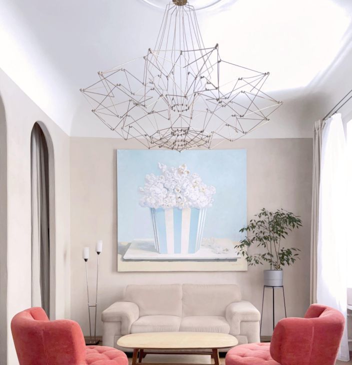 - Интерьер спокойный, собранный. Mid-century в классической архитектурной оболочке.