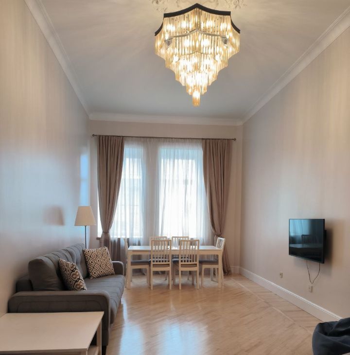 Просторная квартира 82 м кв в самом сердце Петербурга. Вид на Александровский парк и Адмиралтейство. Дом - памятник в стиле неоклассицизма с элементами модерна.