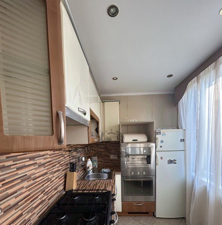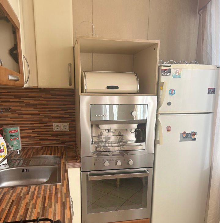 Полностью меблирована: большая двуспальная кровать, уютные большие кресла и диван, кухня оборудована встроеным духовым шкафом, по согласованию, микроволновку можно будет включить в стоимость аренды.