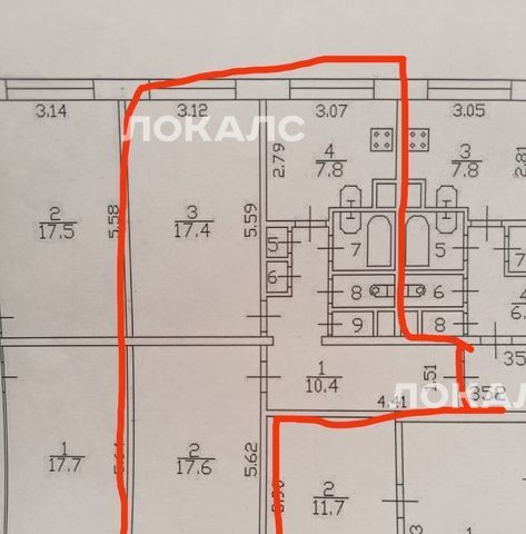 Комнаты: 17.4 кв.м/17,6кв.м с выходом на балкон
