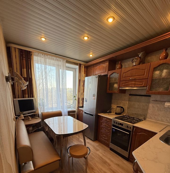 Квартира расположена на 8 этаже 9-этажного кирпичного дома 1964 года постройки. Общая площадь составляет 48 кв. м, из которых 29,9 кв. м — жилая площадь. Высота потолков — 2,54 м. Есть балкон.