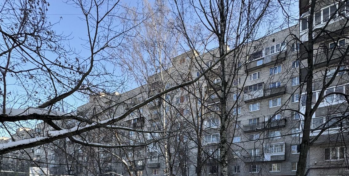 Надёжный кирпичный дом, окружённый зеленью. Чистая парадная, есть лифт. Спокойные вежливые соседи. Около дома есть место для парковки.