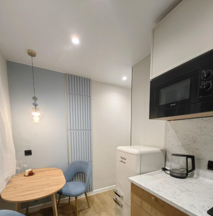 В квартире сделан капитальный ремонт в ноябре 2025 года (в ней никто не жил после ремонта). Полностью заменены двери и абсолютно все инженерные коммуникации: трубы водоснабжения и канализации, радиаторы отопления, электроснабжение. Кухня будет оборудована под ключ всей необходимой мебелью и встроенной техникой (всё новое). В квартире есть кондиционер, бойлер, стиральная машина.
