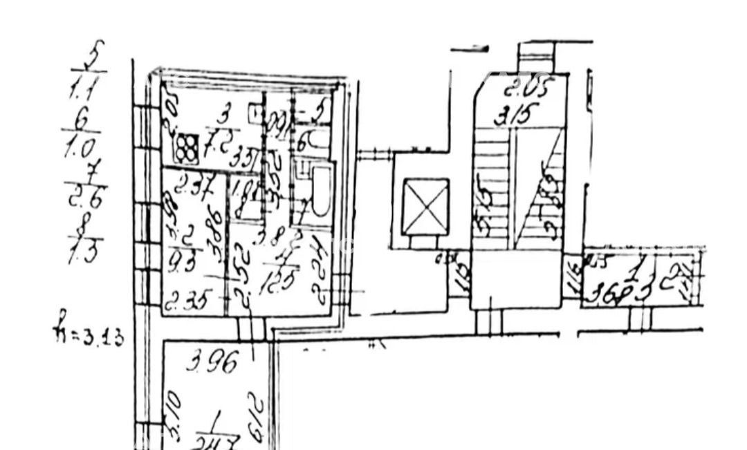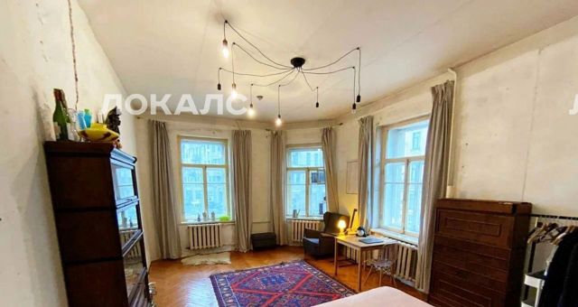 Общая площадь 59.7 квм, 2 изолированные комнаты, высокие потолки 3.13м. В квартире 6 окон, все выходят на улицу. Необычный срезанный угол с окном интересная архитектура деталь.