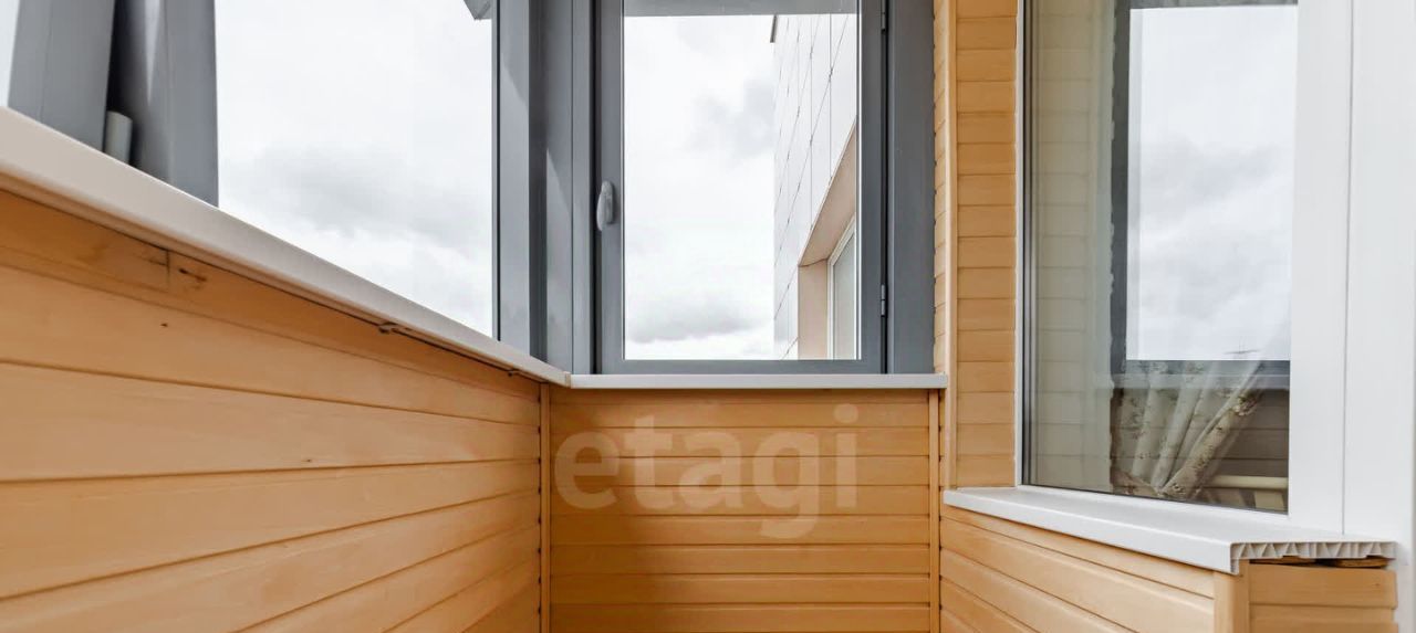 Вторая комната также с раскладным диваном, рабочей зоной и шкафом. Выход на панорамную лоджию с зоной отдыха и невероятным видом на город.