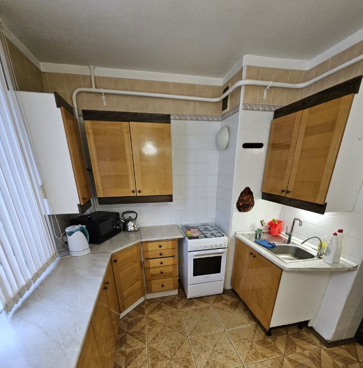Квартира с косметическим ремонтом полностью готовая для заселения: есть вся мебель, сантехника (включая бойлер), стиральная машина, холодильник, телевизор, микроволновка, чайник, посуда. В квартире есть кровать (90 см), диван-книжка и нераскладной диван со спальным местом 80 см. Окно спальни выходит во двор, окна 2й комнаты и кухни - на улицу. Квартира тихая и теплая. До метро 10-15 минут пешком или на транспорте. Рядом есть вся необходимая инфраструктура: аптеки, продуктовые магазины, поликлиника, школы и дет.сады.