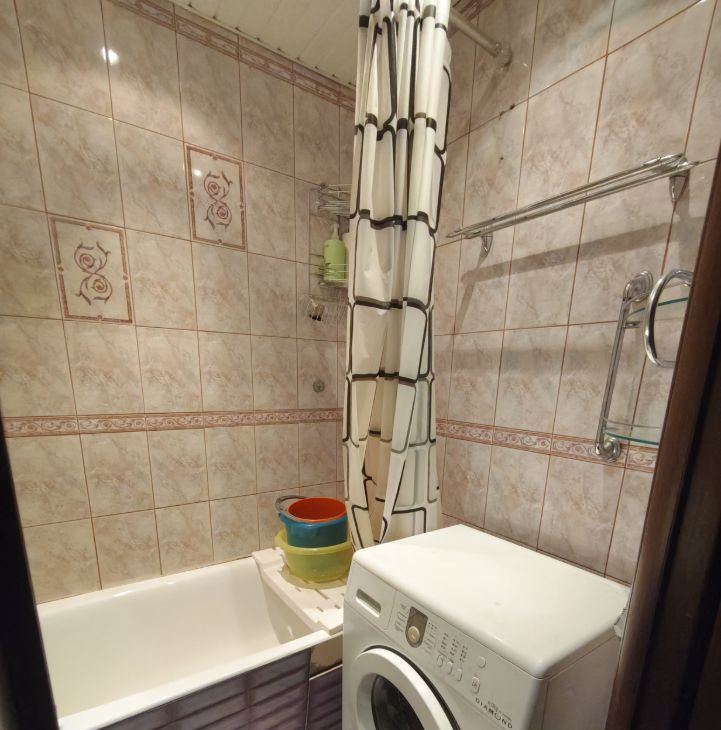 Кроме того, имеется утюг, гладильная доска и стиральная машина.