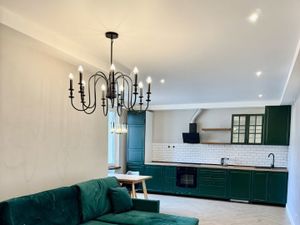 • Планировка: Просторная гостиная (35,9м2) с электрическим камином, изолированная спальня (24м2), большая кухня (18м2).