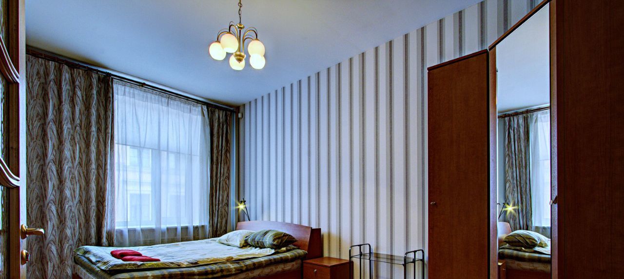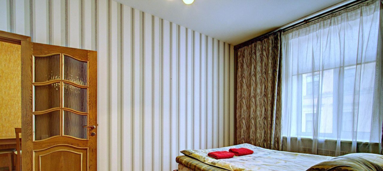 Апартаменты располагаются на четвертом этаже пятиэтажного здания без лифта в нескольких шагах от Невского проспекта. Апартаменты состоят из 2 спален, кухни-гостиной и санузла.