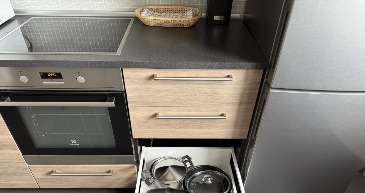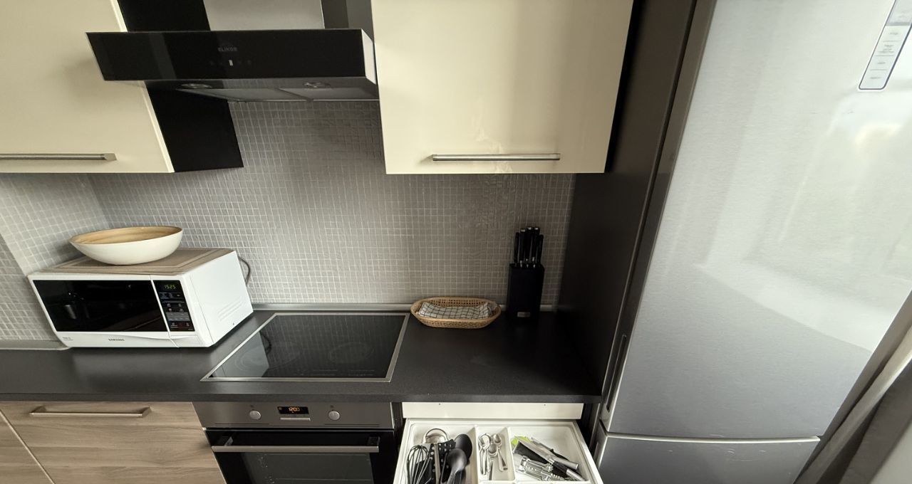 - Кухня: Полностью оборудована - стиральная машина,посудомойка, холодильник, микроволновая печь, электрический чайник, тостер, духовой шкаф, пылесос, посуда.